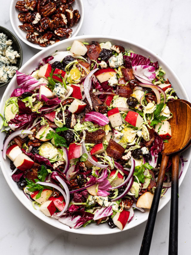As the chilly nights begin and we start to crave cozier foods, I go for this favorite combination of apples, feta cheese, and toasty walnuts. Fresh herbs, and a citrus-heavy dressing help keep the salad bright and invigorating.