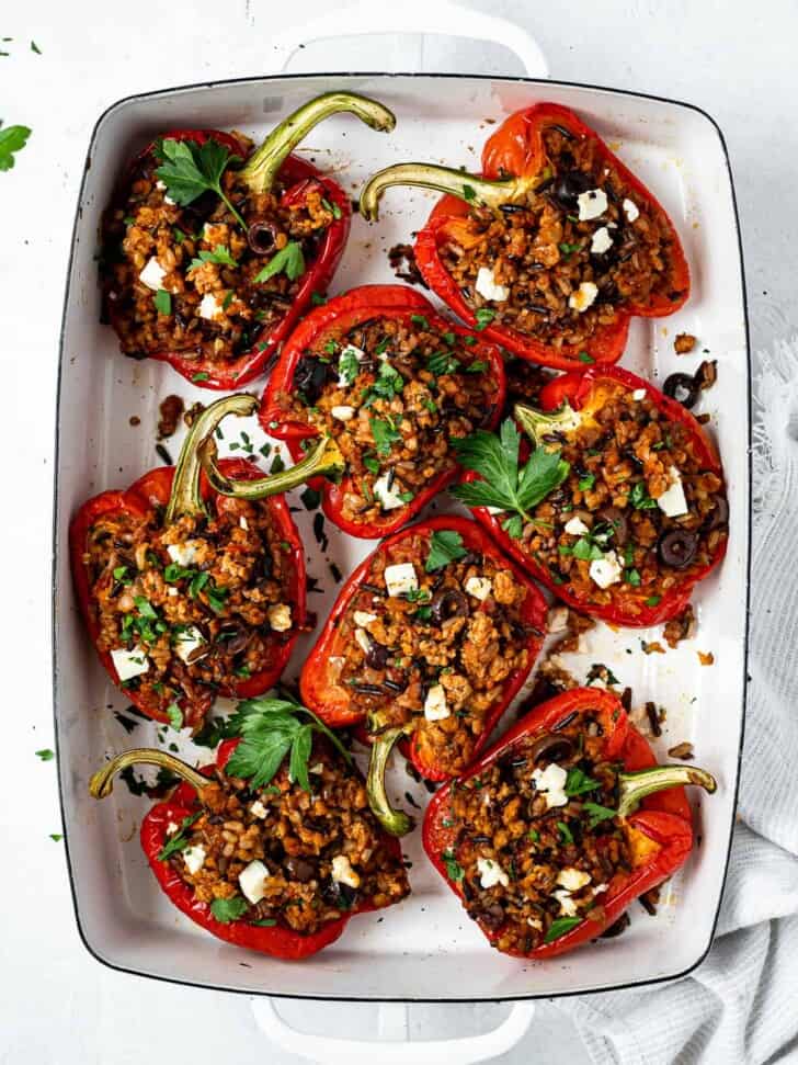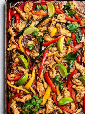 - 6 large sweet bell peppers (I use a mix of red, yellow, green and orange), ย stemmed, seeded, and sliced lengthwise 1/2 inch thick